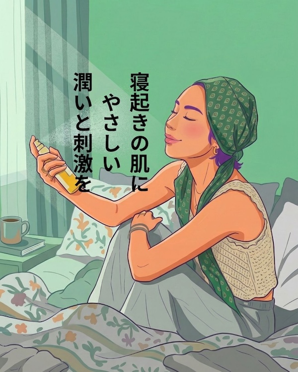 潤い、そして香りの合わせ技で心地よく起きれること間違いなし。